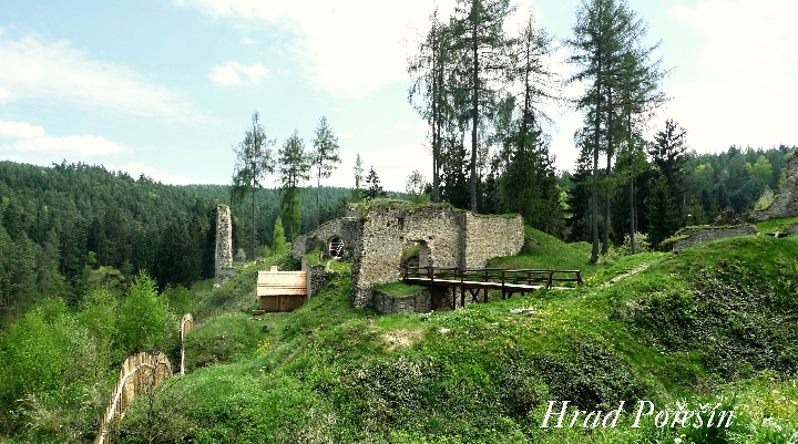 Hrad Pořešín byl založen na konci 13. století a měl podobu poměrně mohutného hradu s vysokou útočištnou věží, palácem a dvěma předhradími. Obehnaný byl plášťovou hradbou. Působivé rozvaliny dnes doplňuje i Hradní muzeum a expozice středověkých řemesel a stavitelství, jež zajišťovaly potřeby pro běžný provoz hradu. Tedy je zde k vidění středověká kovárna, dýmací pec, obydlí kováře, tesařskou a kamenickou dílnu či středověkou kuchyni s dýmníkem a chlebovou pecí.