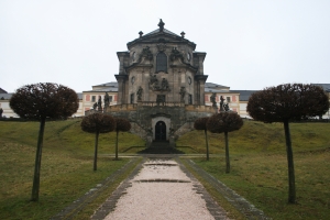 Celý komplex vyrůstal pravděpodobně pod dohledem proslulého barokního stavitele Givanniho Battisty Alliprandiho, který je také autorem projektu kostela Nejsvětější Trojice a hospitalu na protější straně řeky Labe. Prostor před průčelím kostela a hospitalu byl vyzdoben sochami z dílny Matyáše Bernarda Brauna, zobrazujícími mimo alegorie Náboženství řadu Ctností a Neřestí. Sochařská výzdoba vznikla v letech 1712 – 1731.