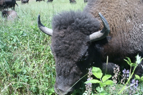 Bizon je velký turovitý sudokopytník vážící kolem jedné tuny. Původní domov bizonů je v Severní Americe. Bizon byl v minulosti téměř vyhuben. Zde můžeme obdivovat v ohradě celé stádo.